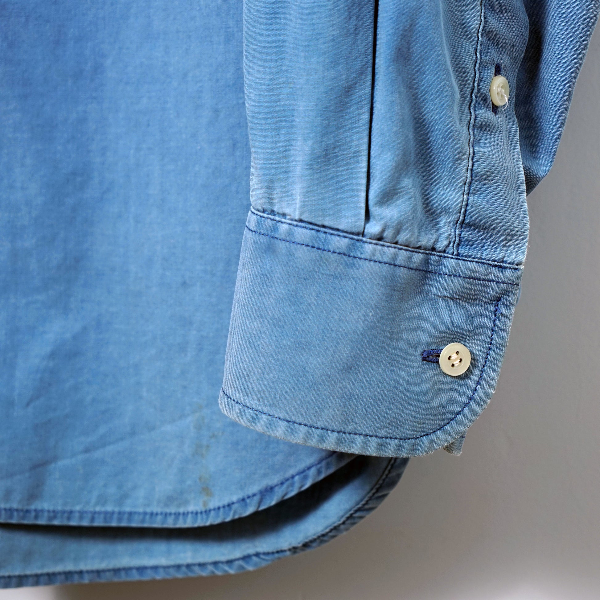 ライトブルーのコットン地に全体的なフェードが入り、ヴィンテージらしい雰囲気です。