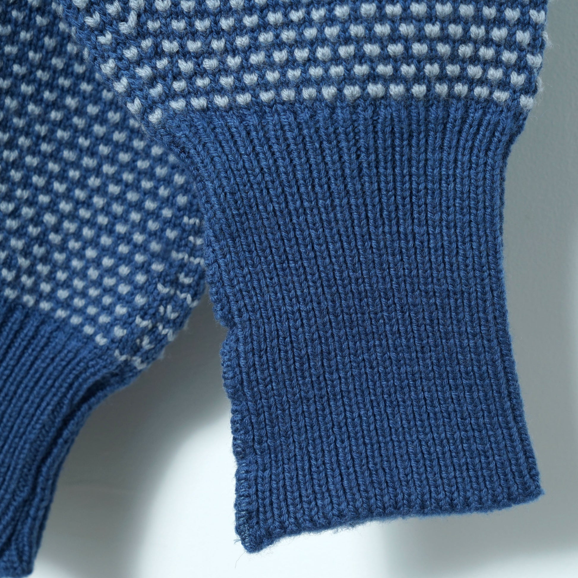 - Color: Blue × Light Grey (small-scale two-tone knit)