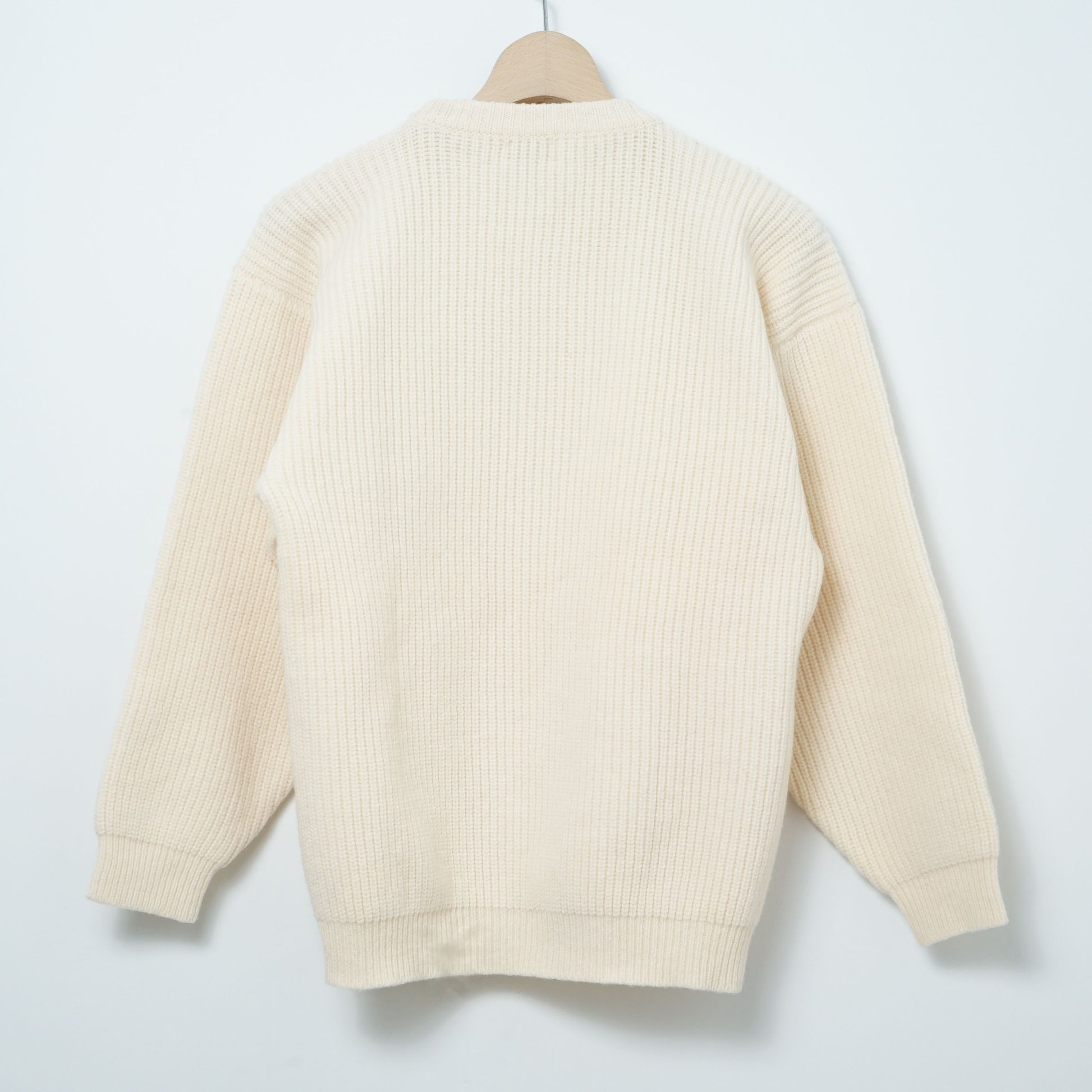 肩を落としたややゆとりのあるシルエットに、短めの袖丈バランスが効いた、ヴィンテージならではの佇まい。シャツに重ねても、一枚でさらりと着ても、優しい温度感を添えてくれます。