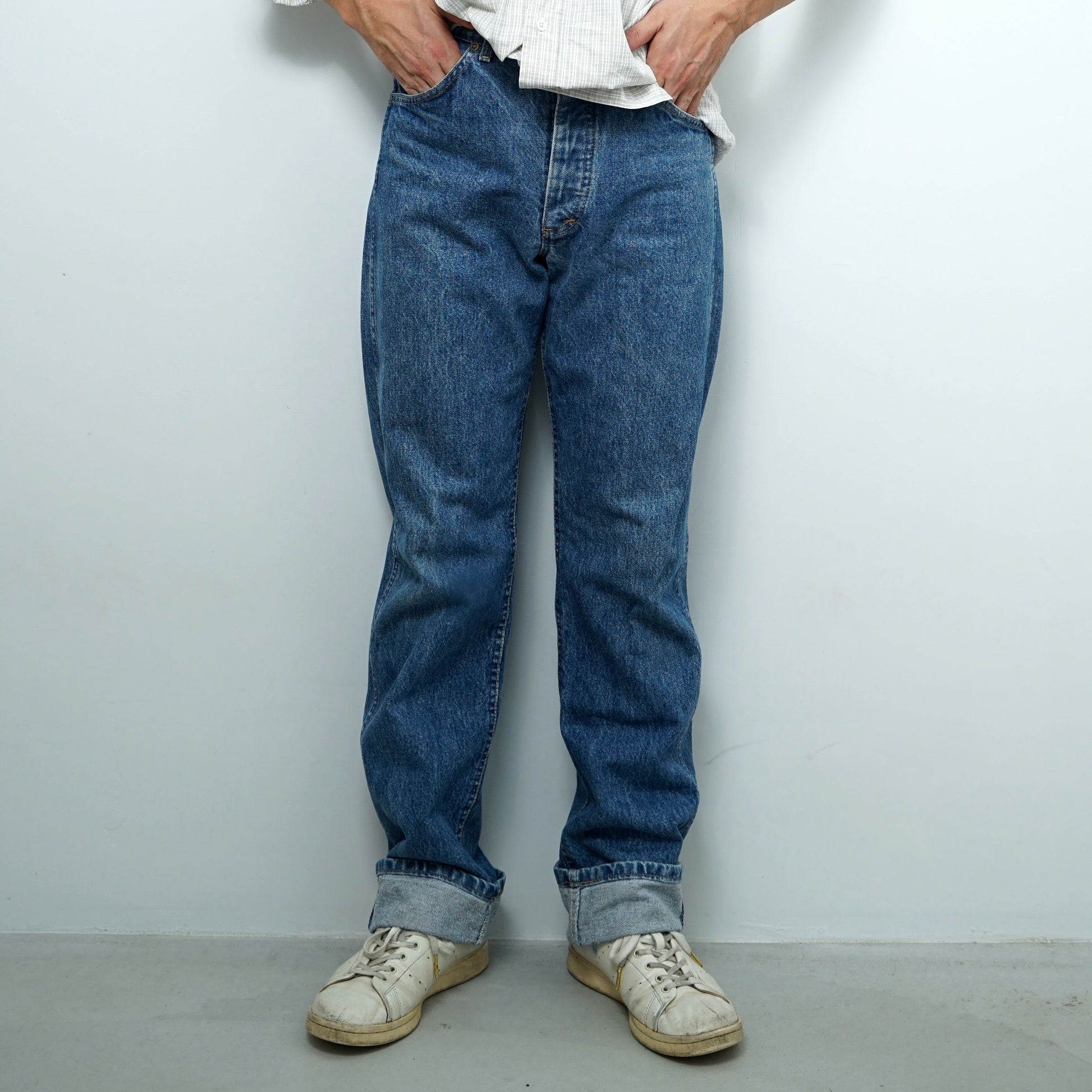 100%コットンのデニム生地は程よくフェードし、90年代らしい自然な色落ちが味わい深い雰囲気に仕上がっています。