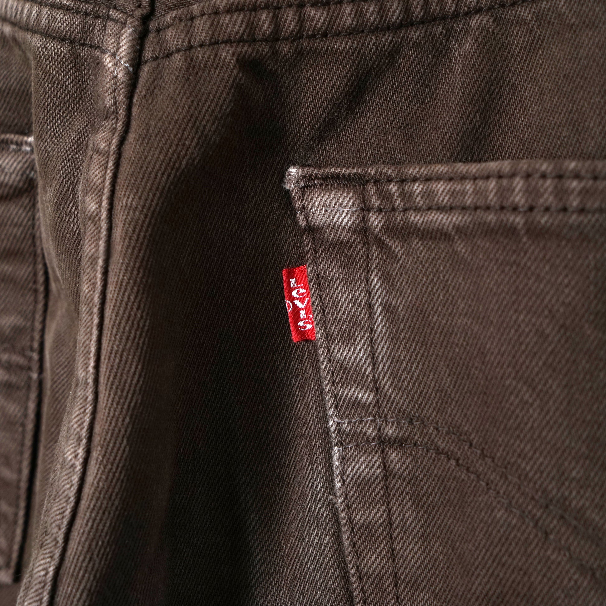 Vintage Levi’s 501 in dark brown, Made in France (late ’90s, tag shows “98”).