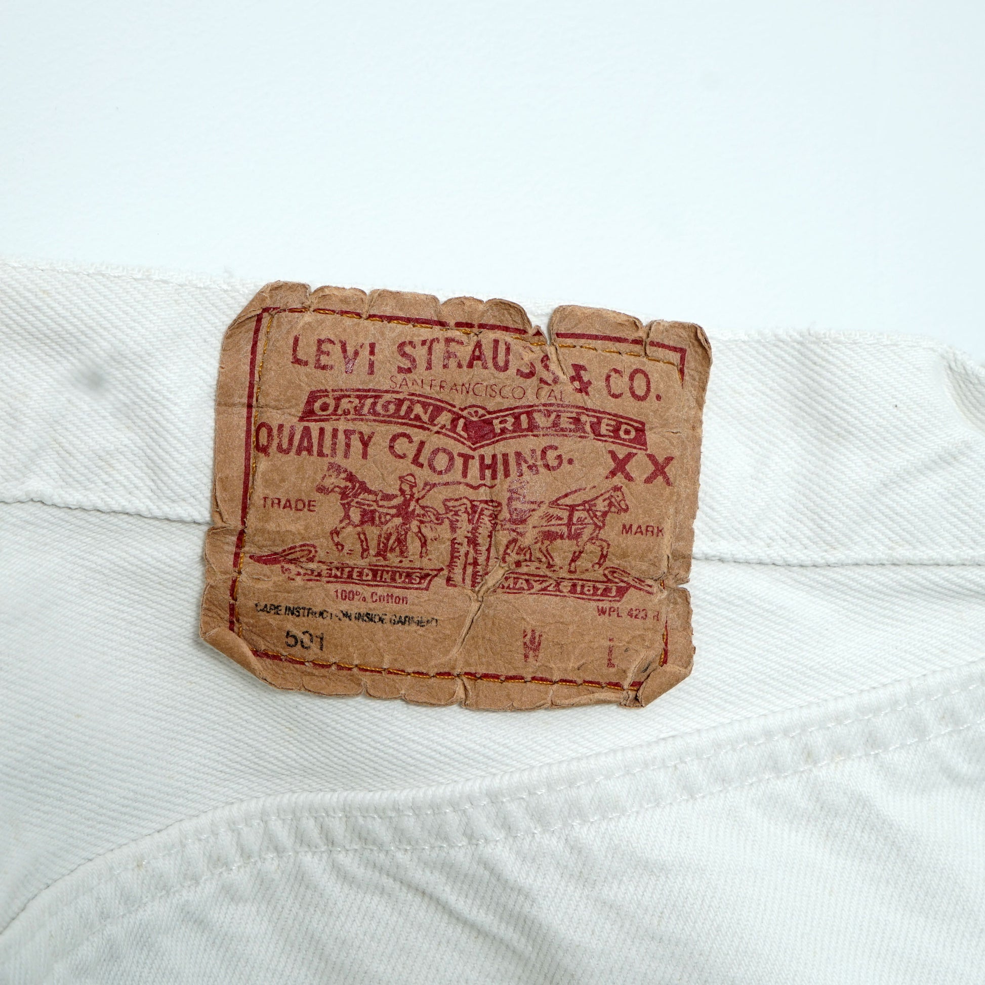 Vintage Levi’s 501 in off-white, Made in France, dated 1993.