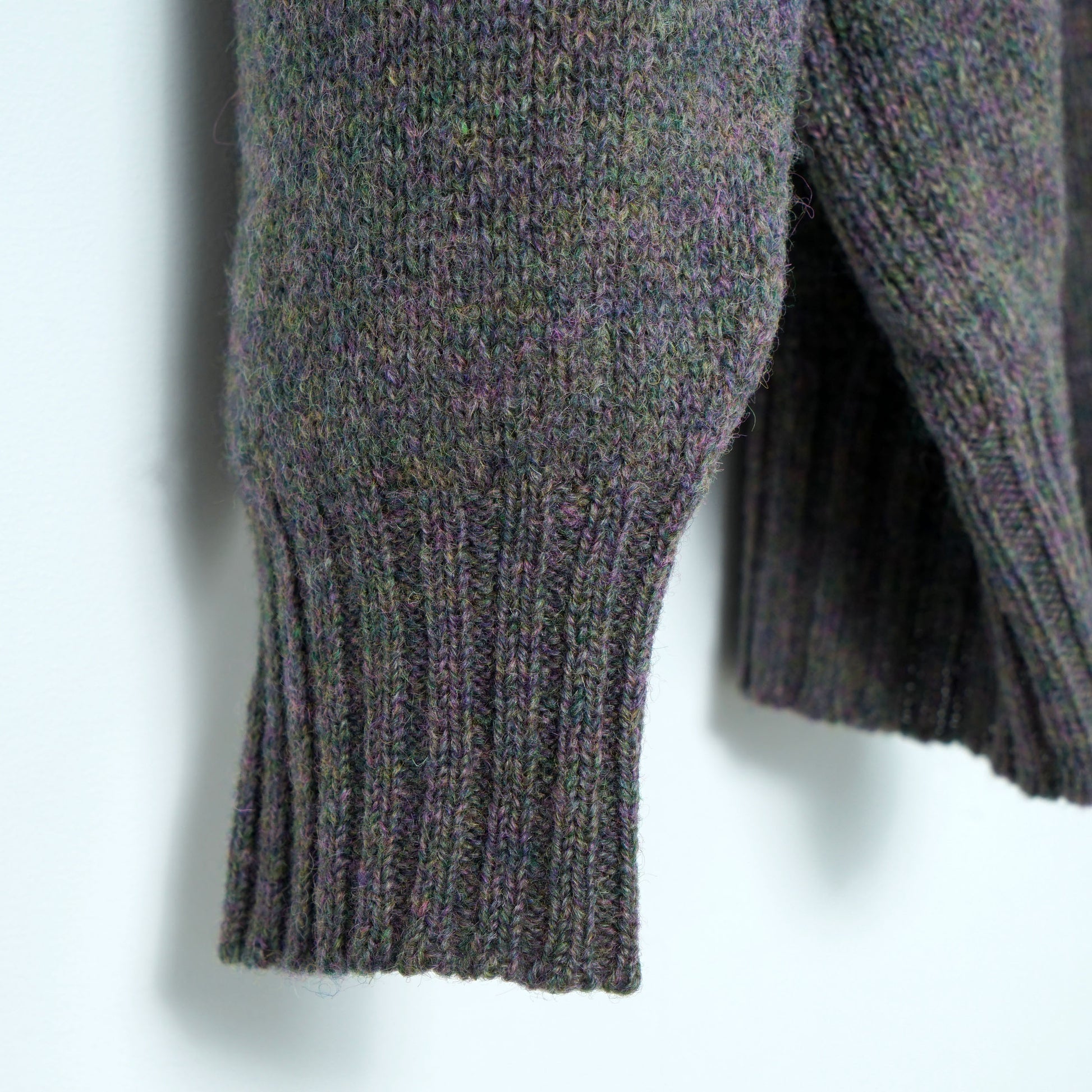 アメリカの老舗アイビーブランド Murray’s Toggery Shop(マレーズ・トーガリー・ショップ) のために、スコットランドの J. & D. McGeorge Ltd. が製作した リアルシェットランド・ウールセーター です。霜降り調のヘザーカラーはグリーンやパープルが奥行きのある表情を生み、クラシックで落ち着いた雰囲気に。