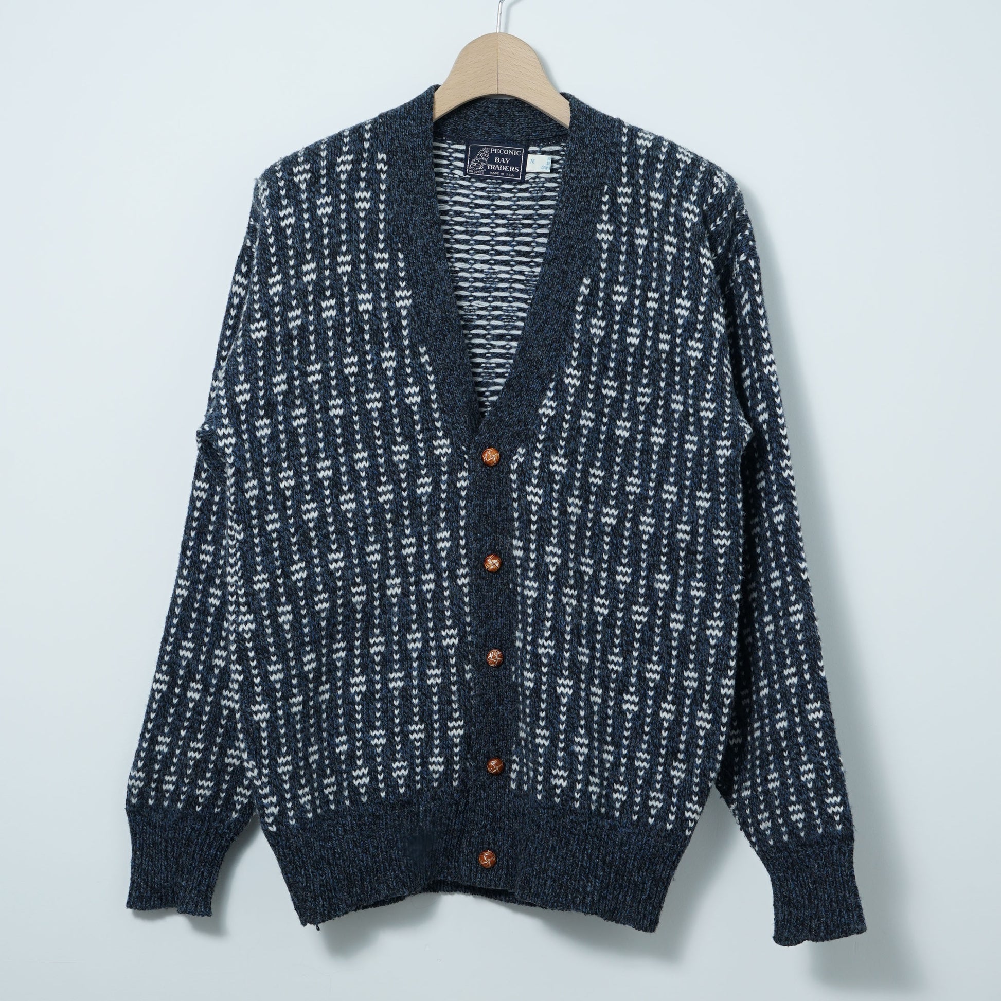 Vintage PECONIC BAY TRADERS V-neck knit cardigan, made in U.S.A..