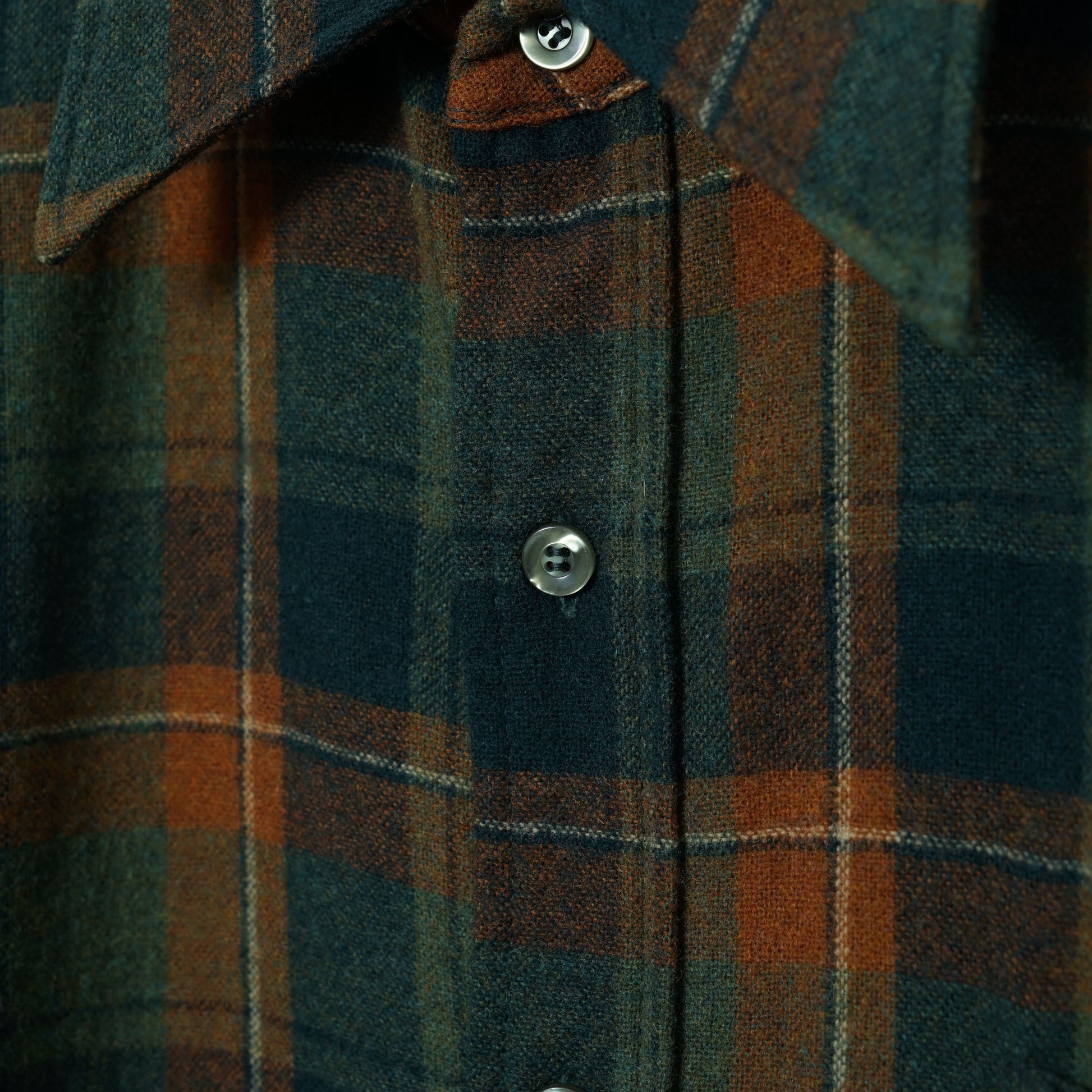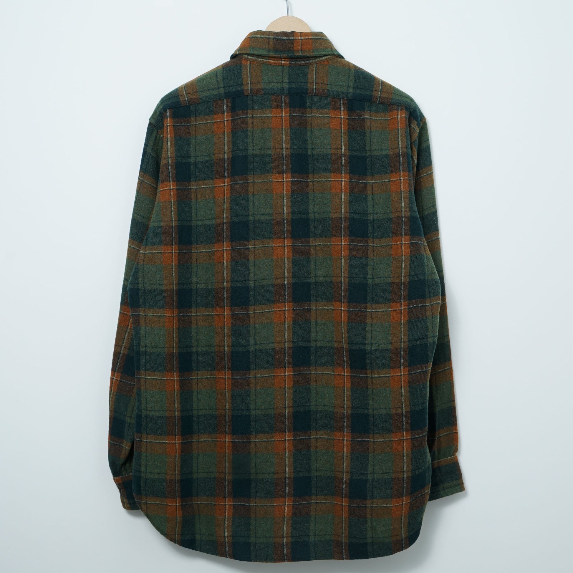 深いグリーンとネイビーをベースに、ラスト(赤茶)の格子が映えるPENDLETONのウールシャツ。