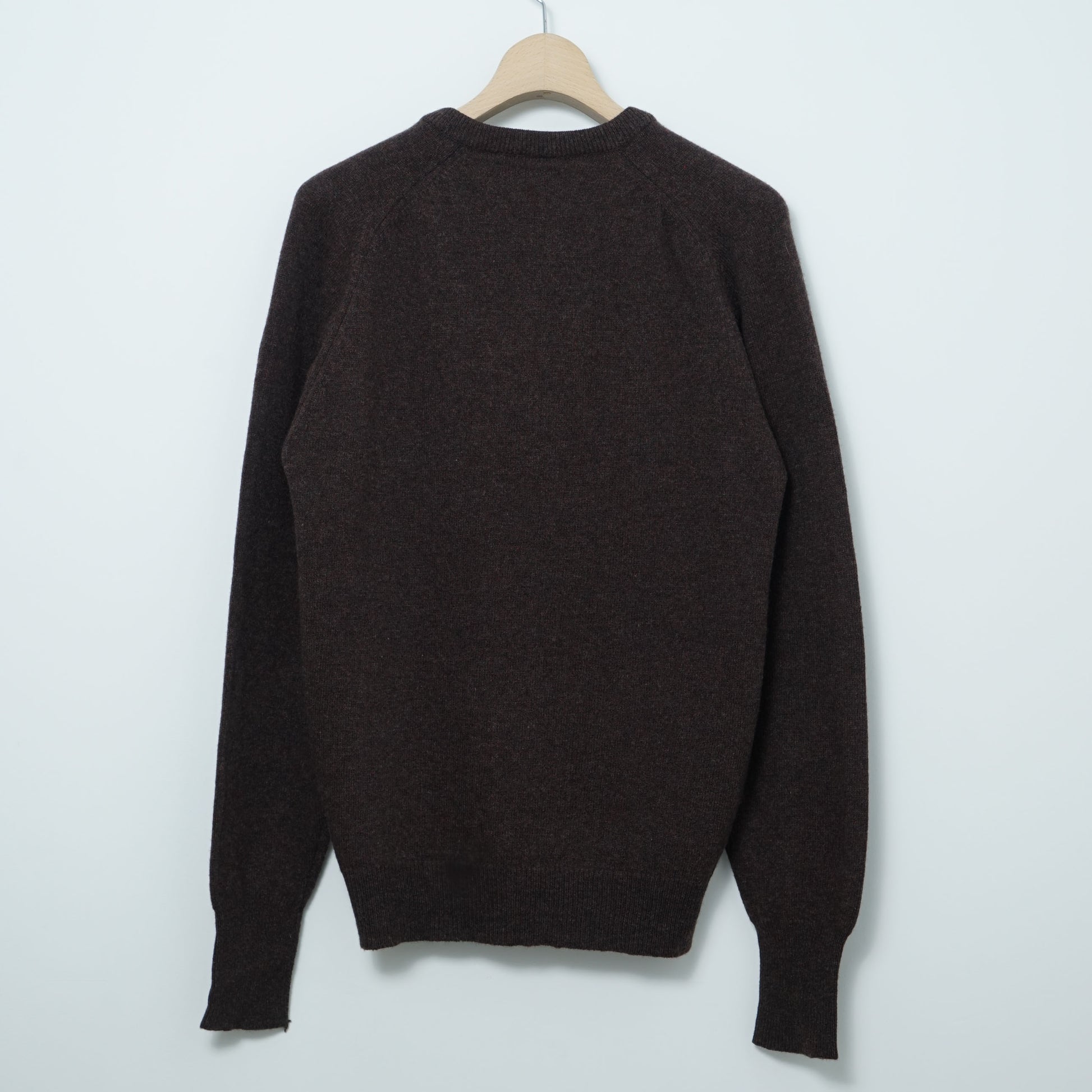 Features a rich heathered dark brown color and a classic V-neck design with raglan sleeves, offering an easy, relaxed silhouette that layers beautifully over shirts or tees.